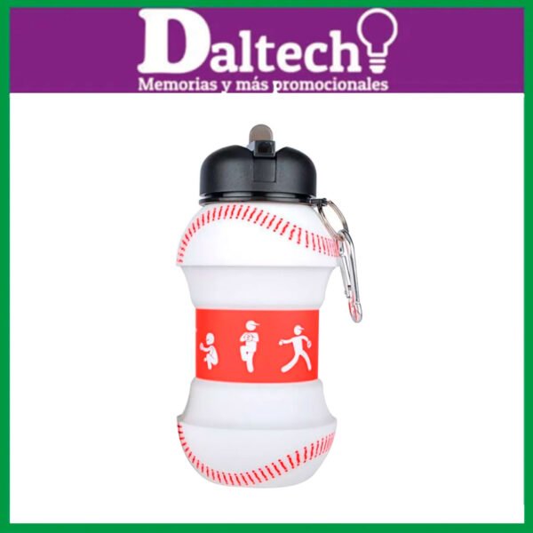 Termo de diseño personalizado reusable plegable irrompible con ganchos para usarlo como llavero, colgarlo en mochilas, bicicletas, casi cualquier cosa, lo que lo hace útil y muy conveniente sobre la marcha y para viajar – Toque suave, botella de agua con boquilla de flujo rápido, genial para niños, equipos, entrenadores.
